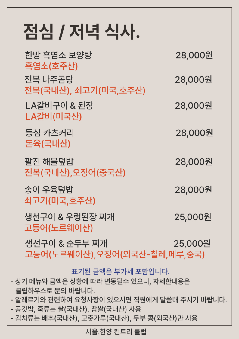 품격있는 요리, 최상의 서비스로 한분 한분 정성으로 모시겠습니다. 클럽하우스 2층에 위치한 대식당에서는 하루의 여유로운 휴식이 되기를 바라는 마음으로 집밥같은 정성으로 준비한 식사를 맛보실 수 있습니다. 또한 계절별로 특선메뉴를 준비해 새로운 즐거움을 선사해 드릴 것입니다.